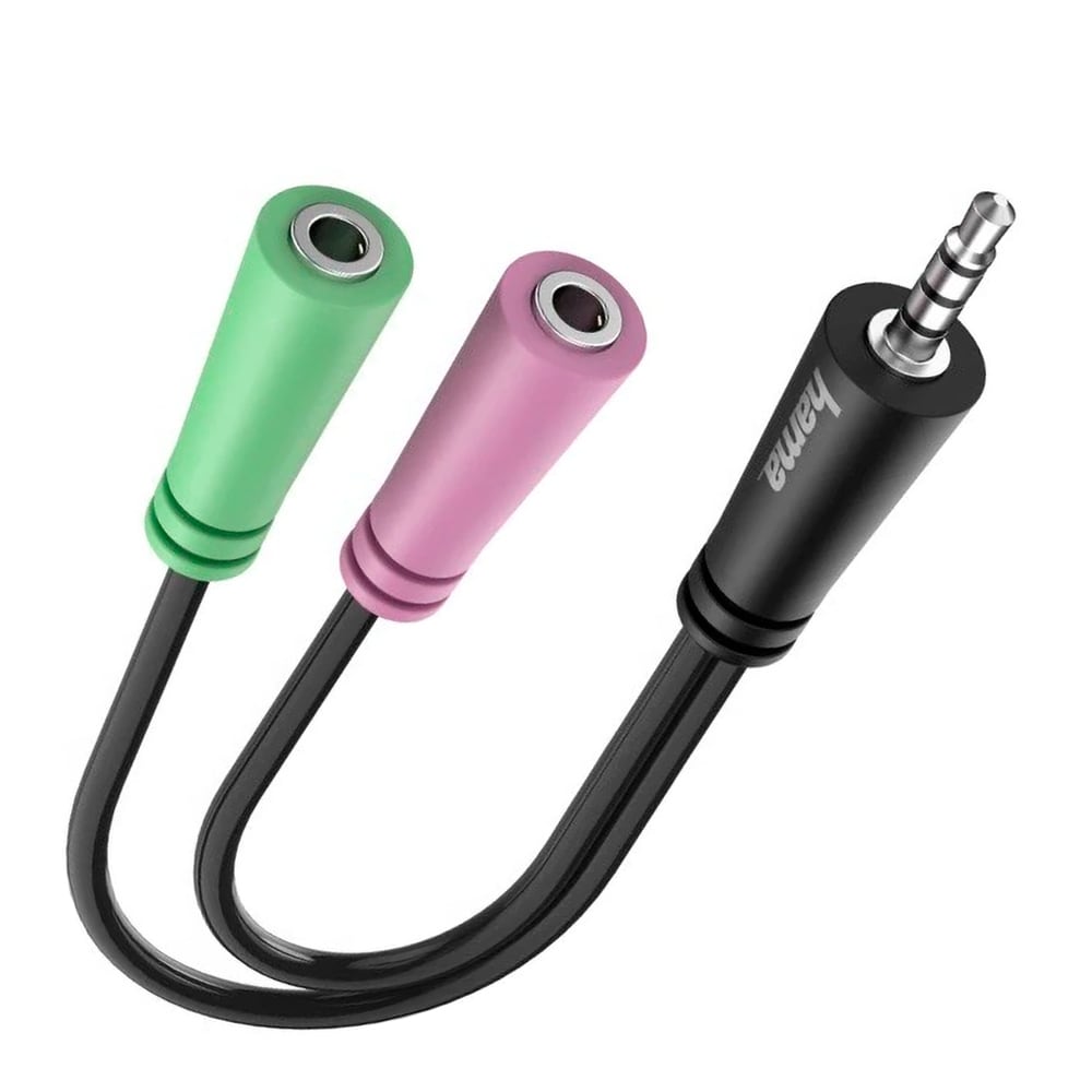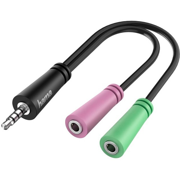 Adaptor audio Jack 3.5 mm 4 pini - 2 x Jack 3.5 mm 3 pini HAMA 200352, negru