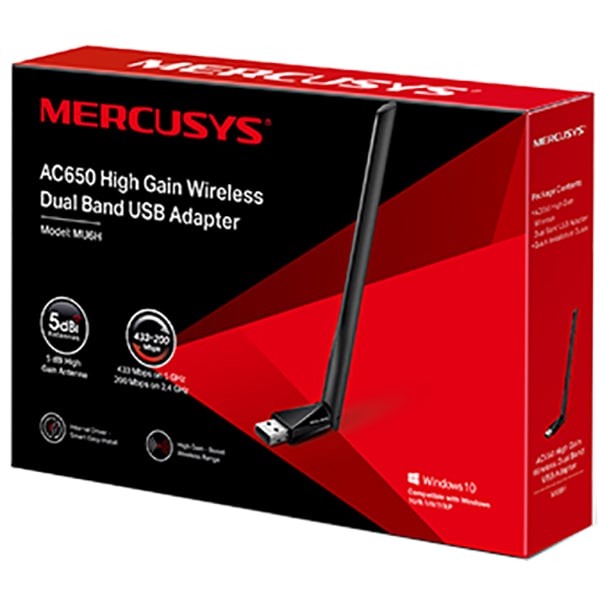 Adaptor USB Wireless MERCUSYS MU6H High-Gain AC650, Dual Band 200 + 433 Mbps, negru