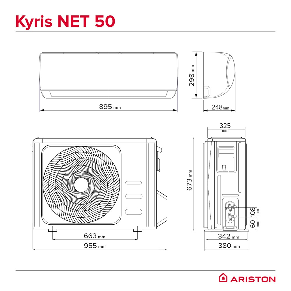 Aer conditionat ARISTON Kyris, 1800BTU, A+++/A+++, Wi-Fi, Functie Incalzire, Inverter, alb