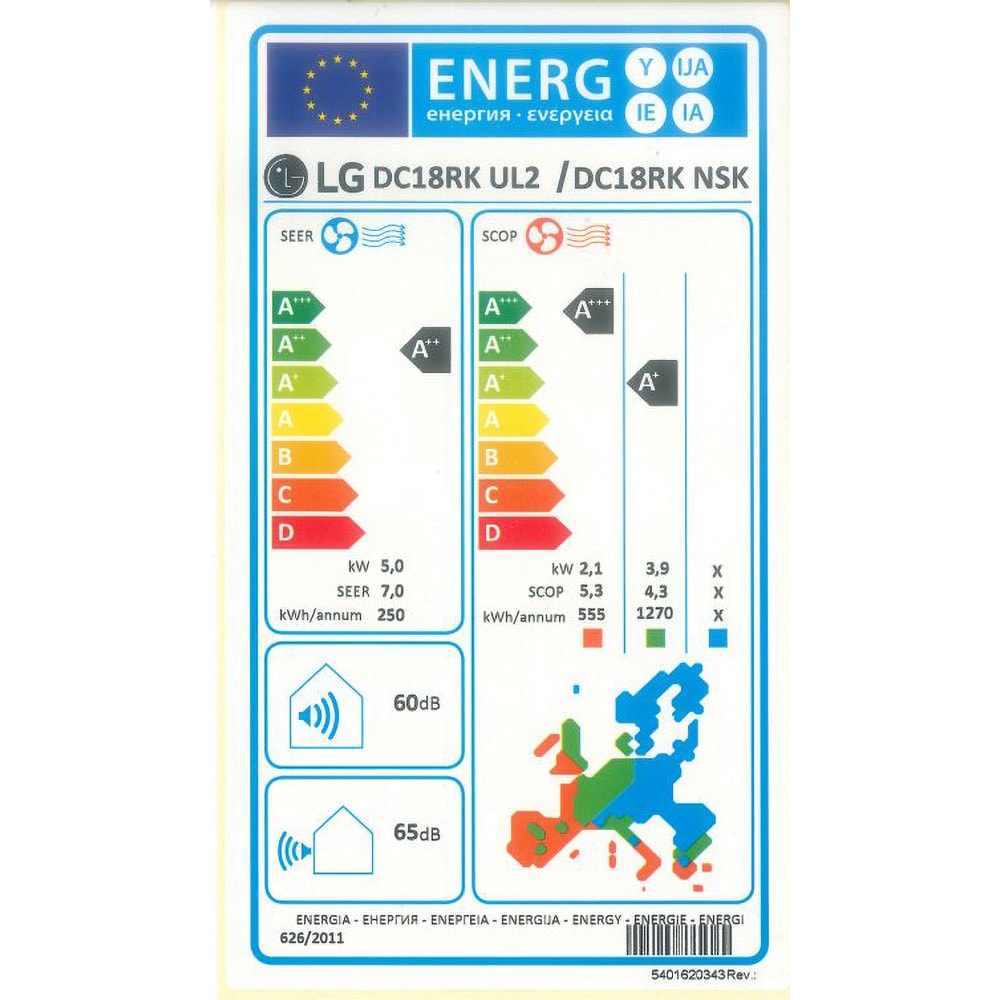 Aer conditionat LG DC18RK, 18000 BTU, A++/A+, Functie Incalzire, Inverter, Purificare aer, alb