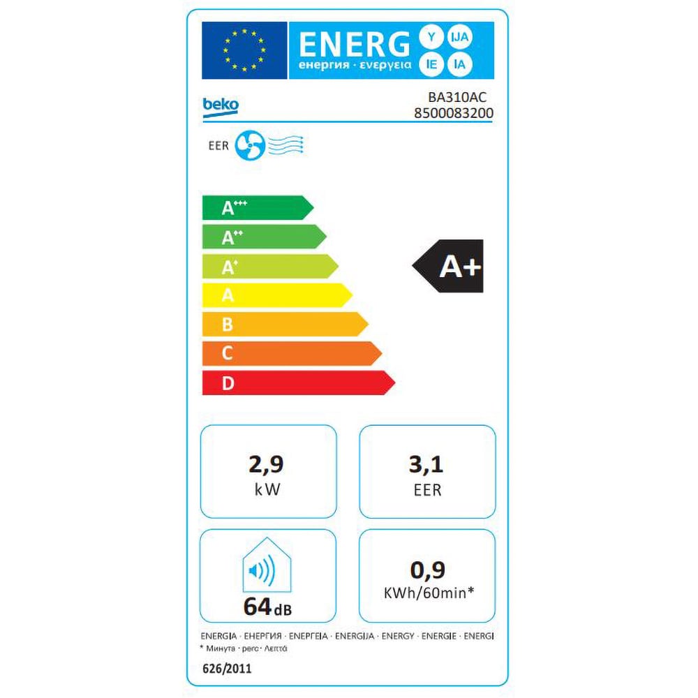 Aer conditionat portabil BEKO BA310AC, 10000 BTU, A+, kit instalare inclus, alb