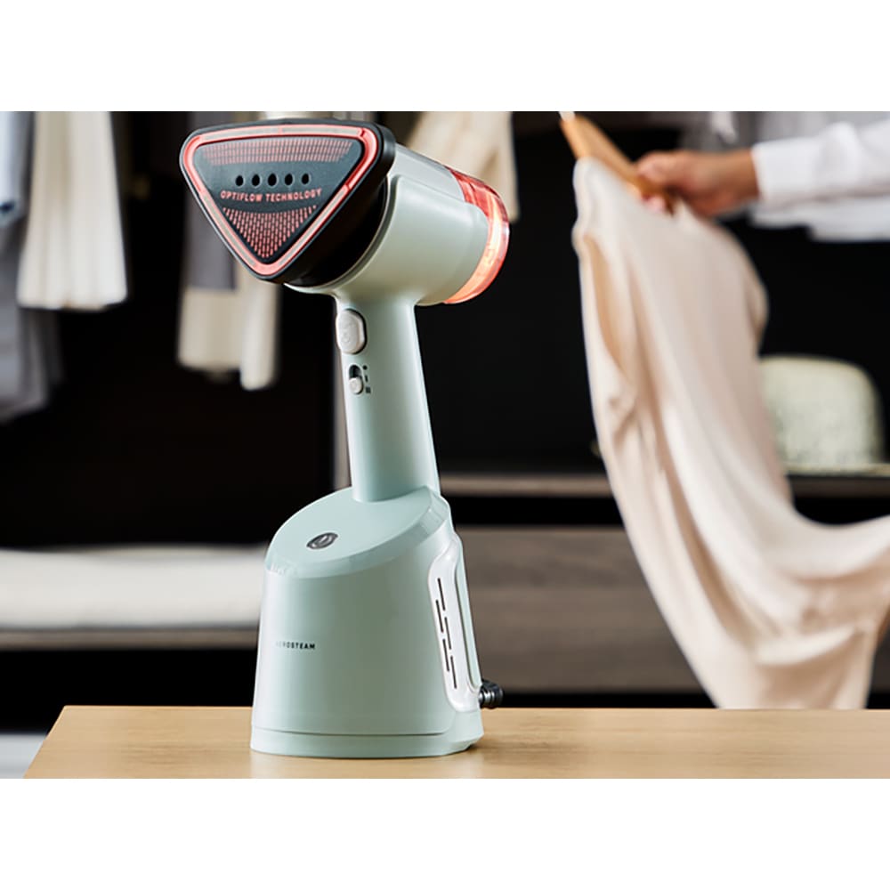 Aparat de calcat vertical cu abur Tefal AeroSteam DT9814F0, 1400W, 90g/min, 100ml, talpa ceramica, alb-roz
