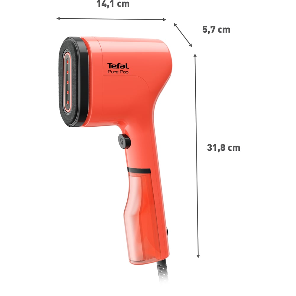 Aparat de calcat vertical TEFAL Pure Pop Garment DT2022E1, 1300W, 70ml, talpa ceramica, rosu