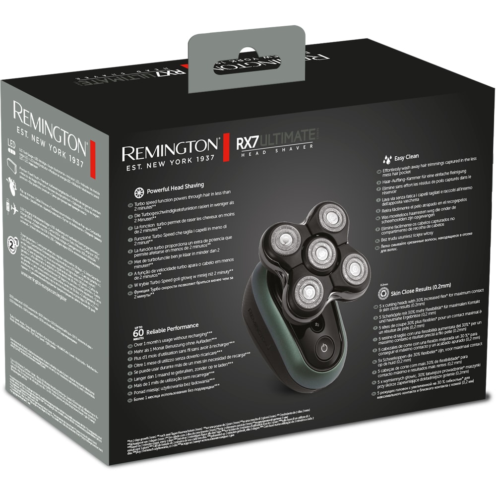 Aparat de ras pentru cap REMINGTON Ultimate RX7 XR1600, acumulator, autonomie 60 min, functie Turbo, negru-verde