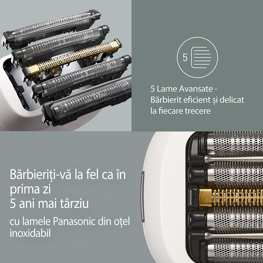 Aparat de ras portabil PANASONIC ES-PV6B-W803 Seria 900, Wet&Dry, autonomie 50 min, 5 elemente taiere, husa voiaj, alb