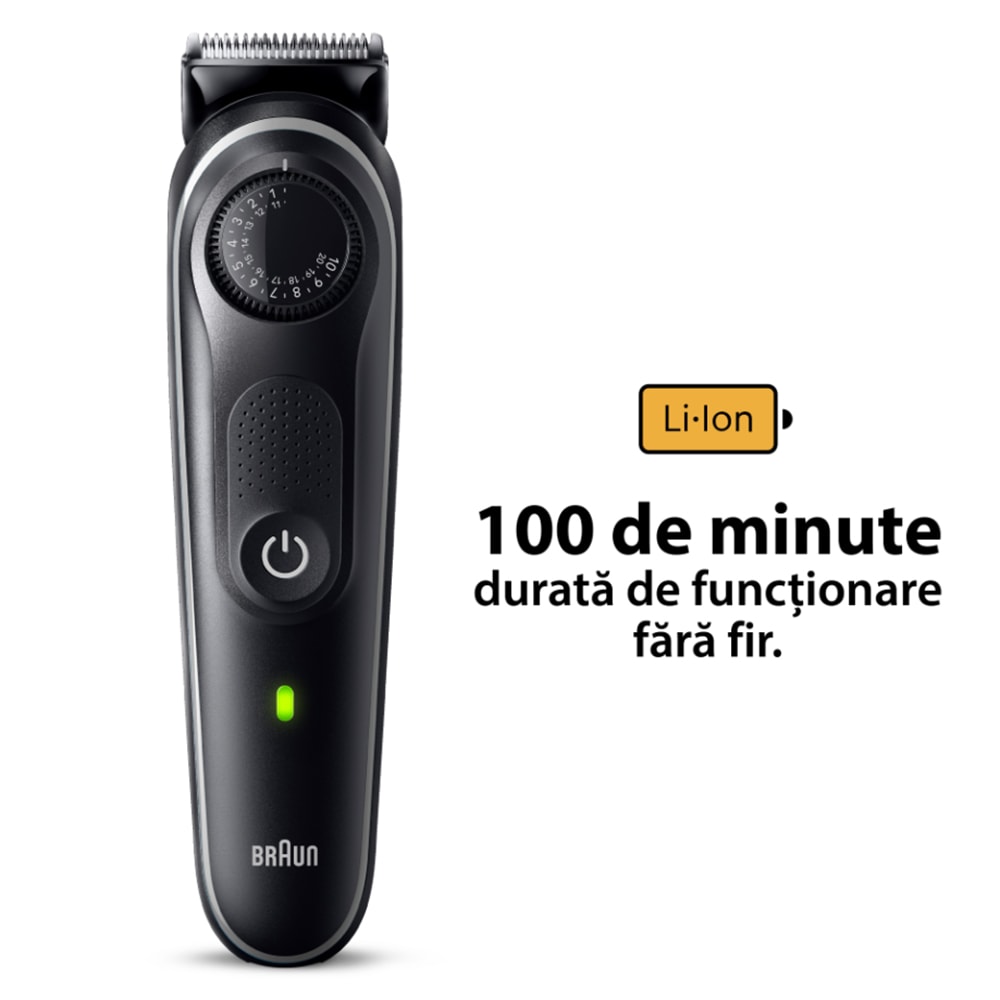 Aparat de tuns barba BRAUN BT5421, acumulator, 100 min autonomie, Wet&Dry, negru