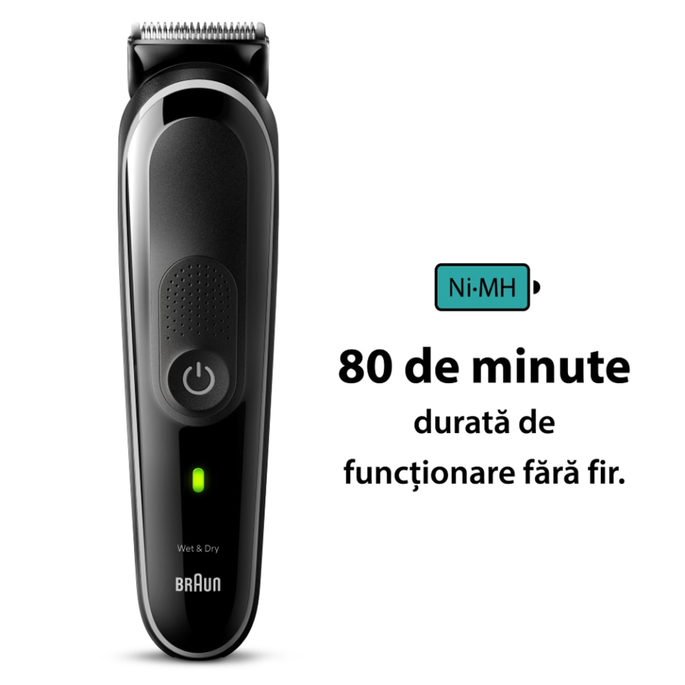 Aparat de tuns multifunctional 8 in 1 BRAUN MGK3440, acumulator, 50 min autonomie, Wet&Dry, negru