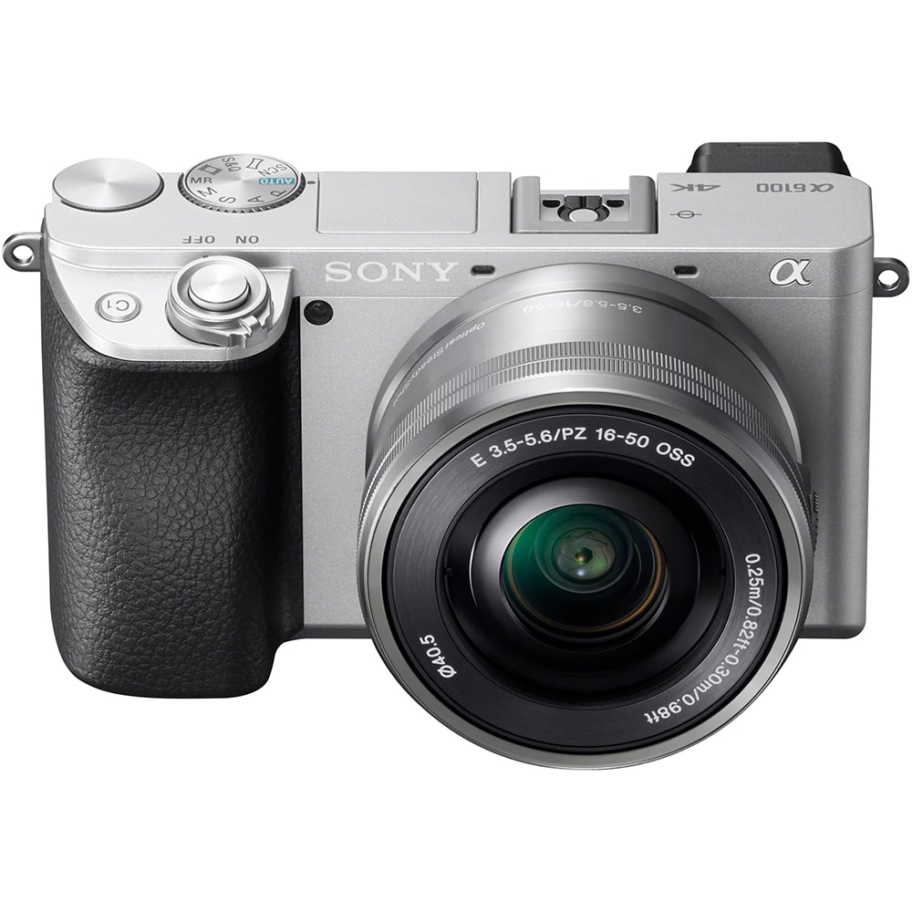 Aparat foto mirrorless SONY Alpha ILCE-6100AKS, 24.2MP, 4K, Wi-Fi, argintiu + Obiectiv SELP16502