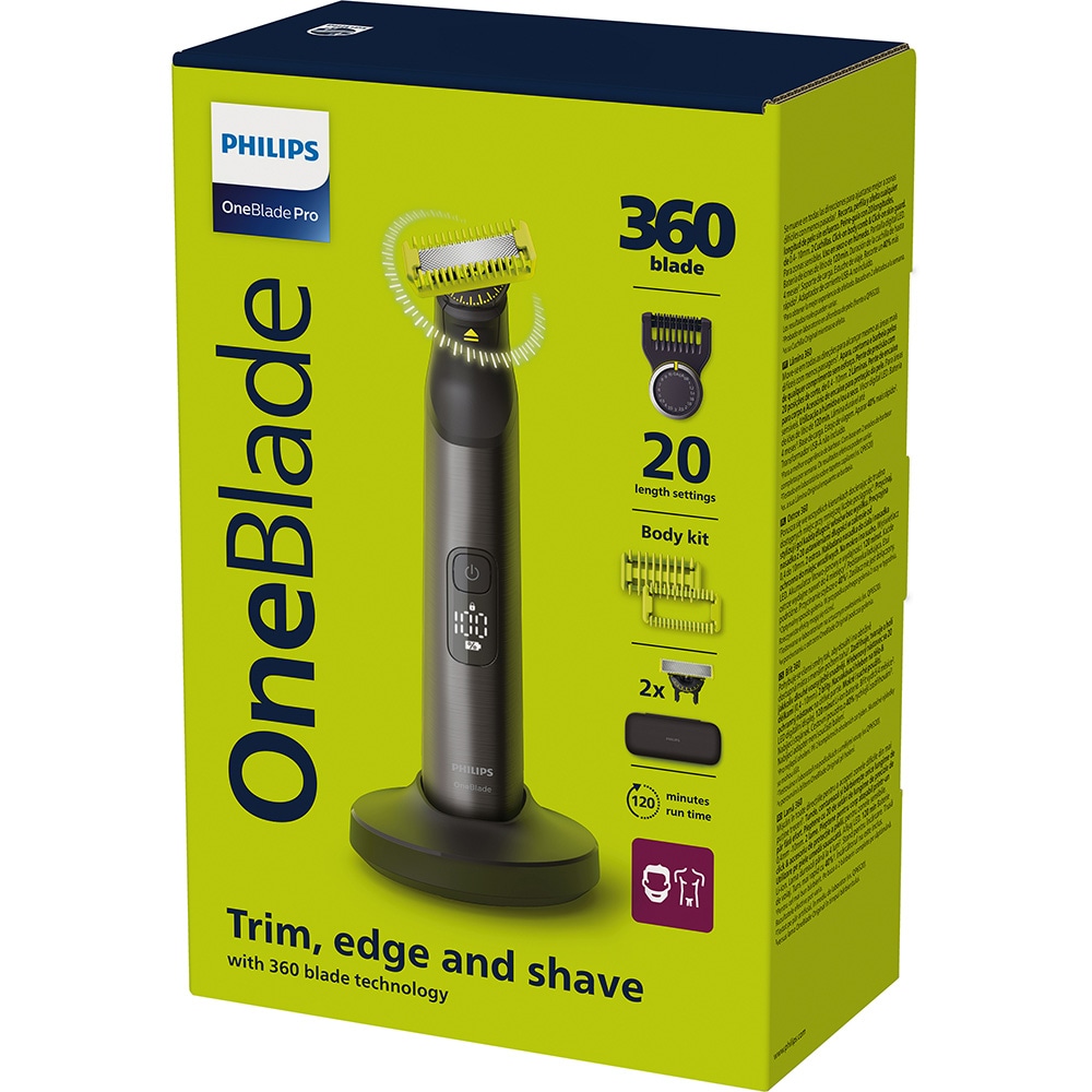 Aparat hibrid de barbierit, tuns barba si parul corporal PHILIPS OneBlade Pro QP6652/61, acumulator, 120 min autonomie, negru