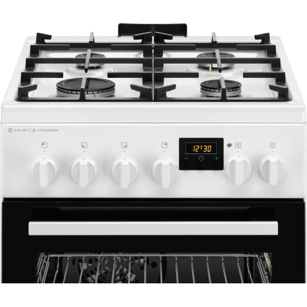 Aragaz AEG CKB56490BW, SteamBake, 4 arzatoare, Gaz + Electric, L 50 cm, Grill, alb