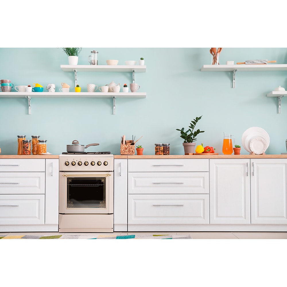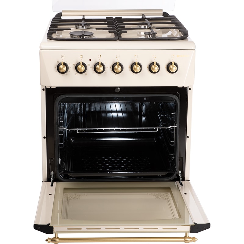 Aragaz VORTEX VAM6060BJ02K, 4 arzatoare, Gaz + Electric, L 60 cm, Grill, bej