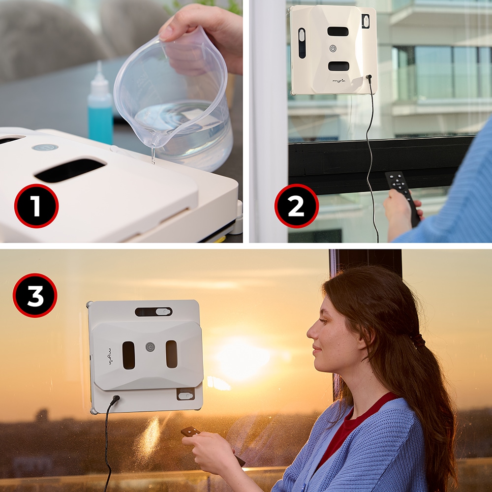 Aspirator robot geamuri MYRIA MY4560, 24V, autonomie max 20 min, Wi-Fi, alb-negru