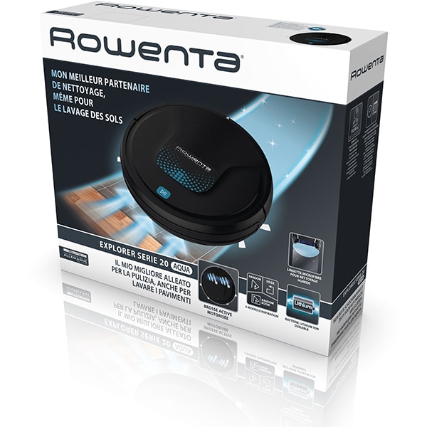 Aspirator robot ROWENTA X-Plorer Aqua Serie 20 RR6875WH, 0.25l, functie mop, 3 functii de curatare, negru