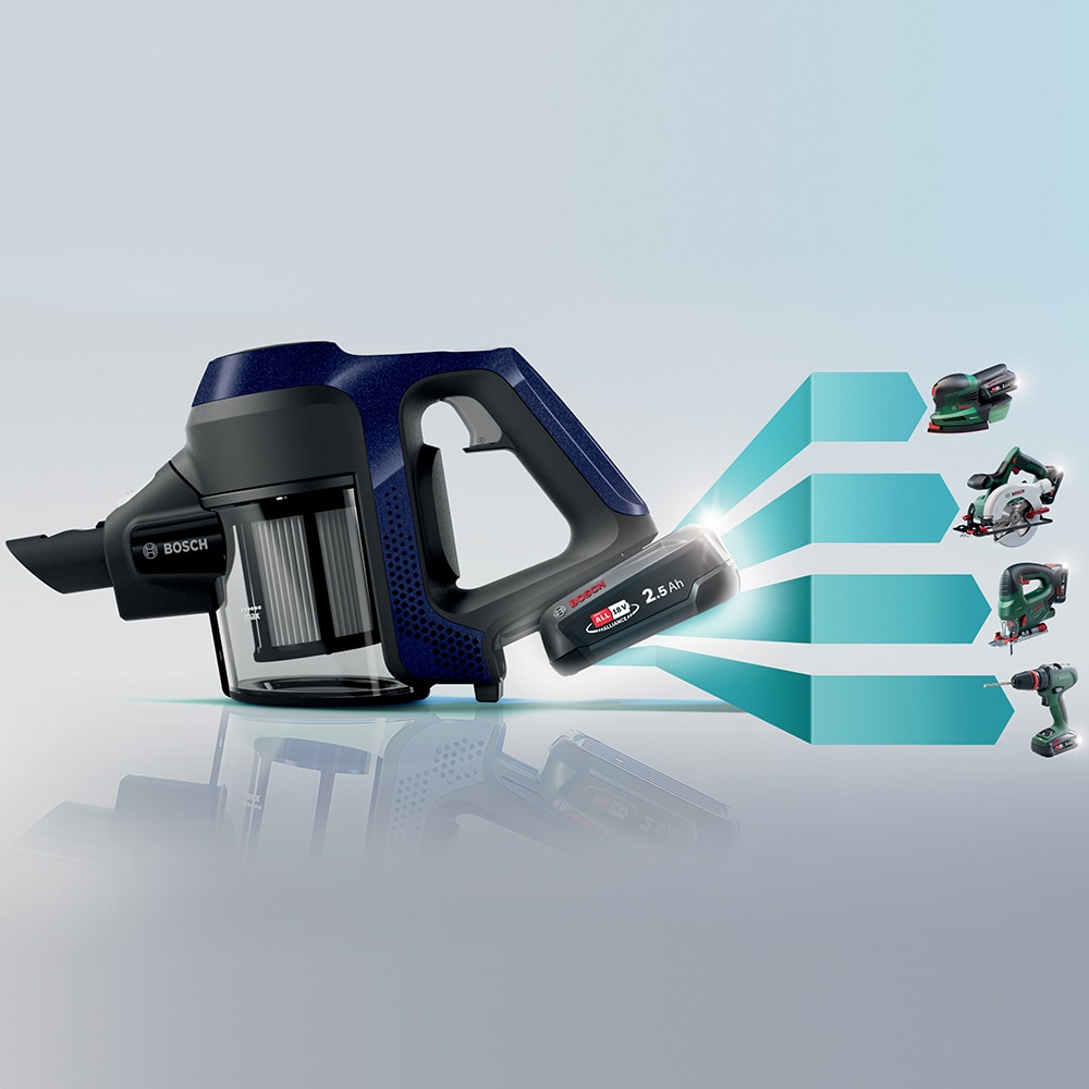Aspirator vertical BOSCH Unlimited Blue Seria 6 BS611MAT, 0.3l, 18V, autonomie max 30 min, Sistemul Power for All, bleumarin-negru