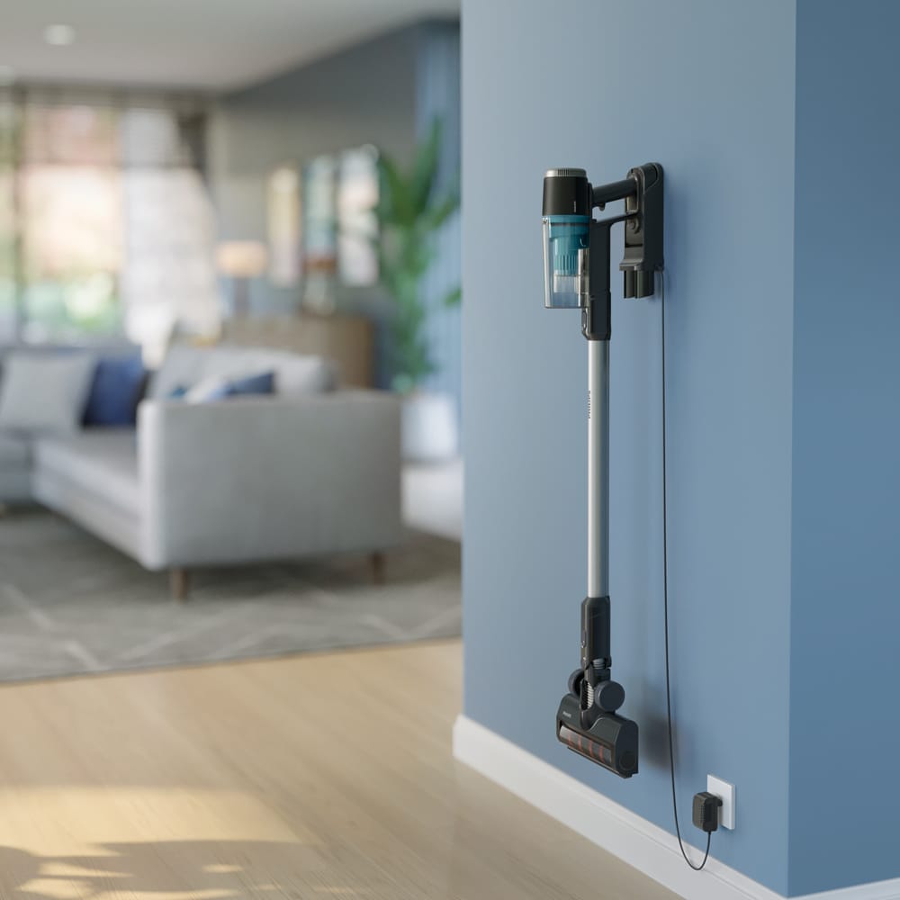 Aspirator vertical PHILIPS XC3133/01, 25.2 V, 0.27l, autonomie max 60 min, PowerCyclone 8, negru-albastru