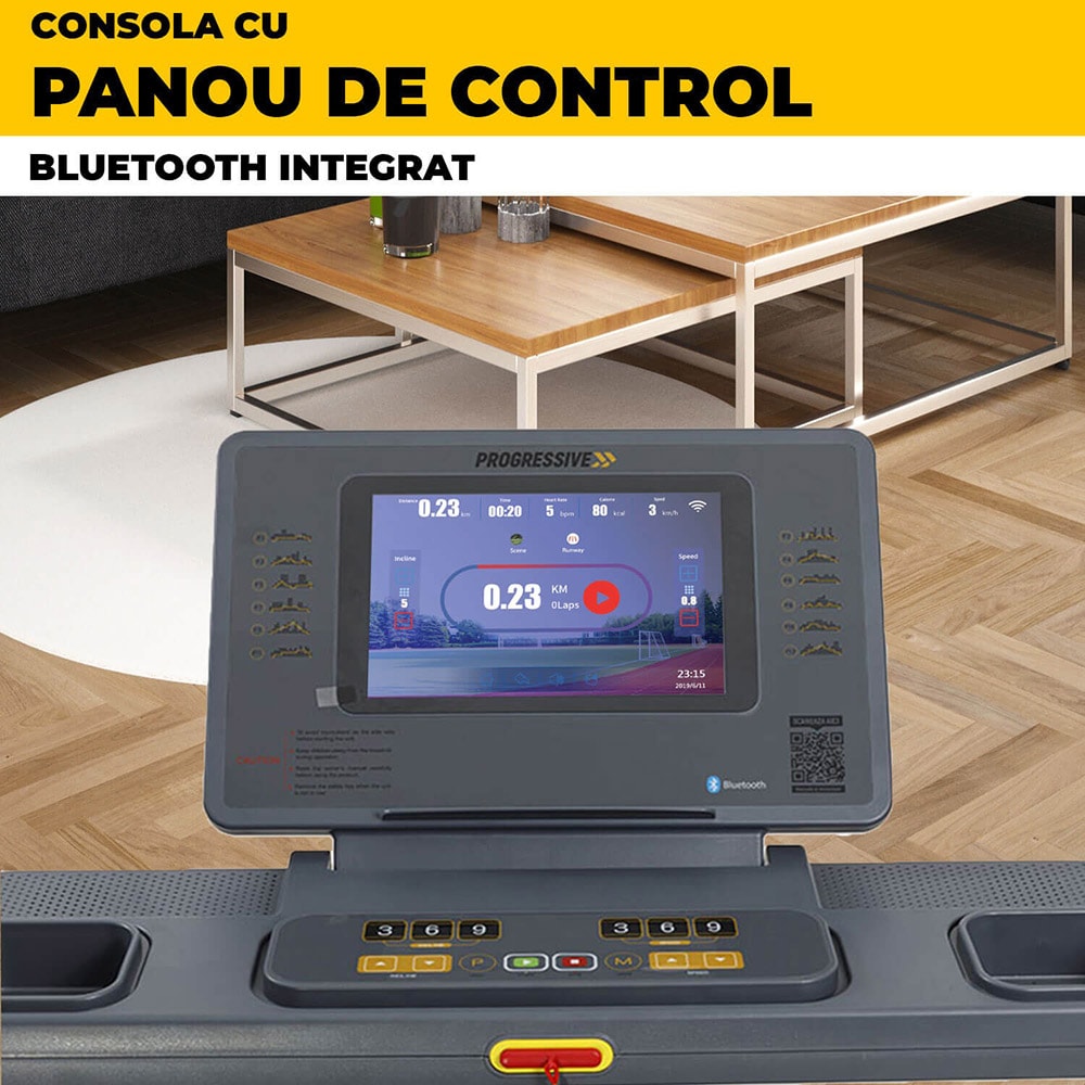 Banda de alergat PROGRESSIVE Run5500, viteza maxima 18 km/h, greutate suportata 130 kg, gri-negru