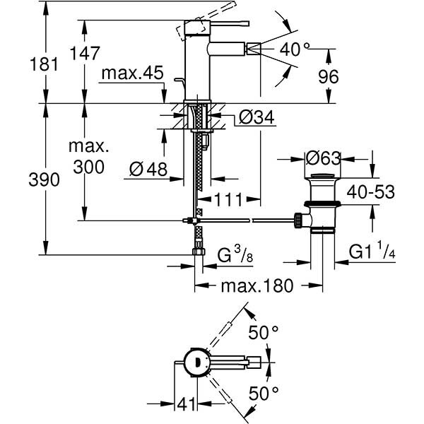 Baterie bideu GROHE Essence 32935001, marimea S, metal, crom