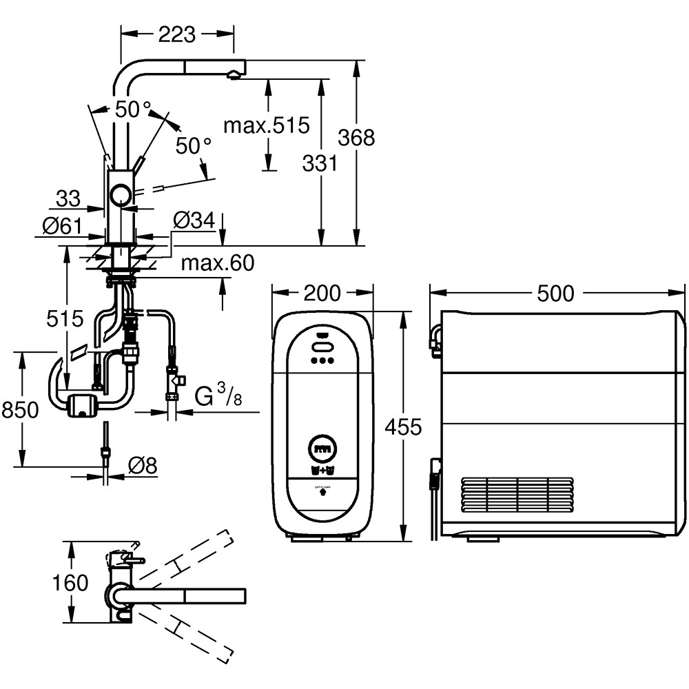 Baterie bucatarie cu unitate de racire si filtru GROHE Blue Home 31539KS0, dus extractibil, alama, negru