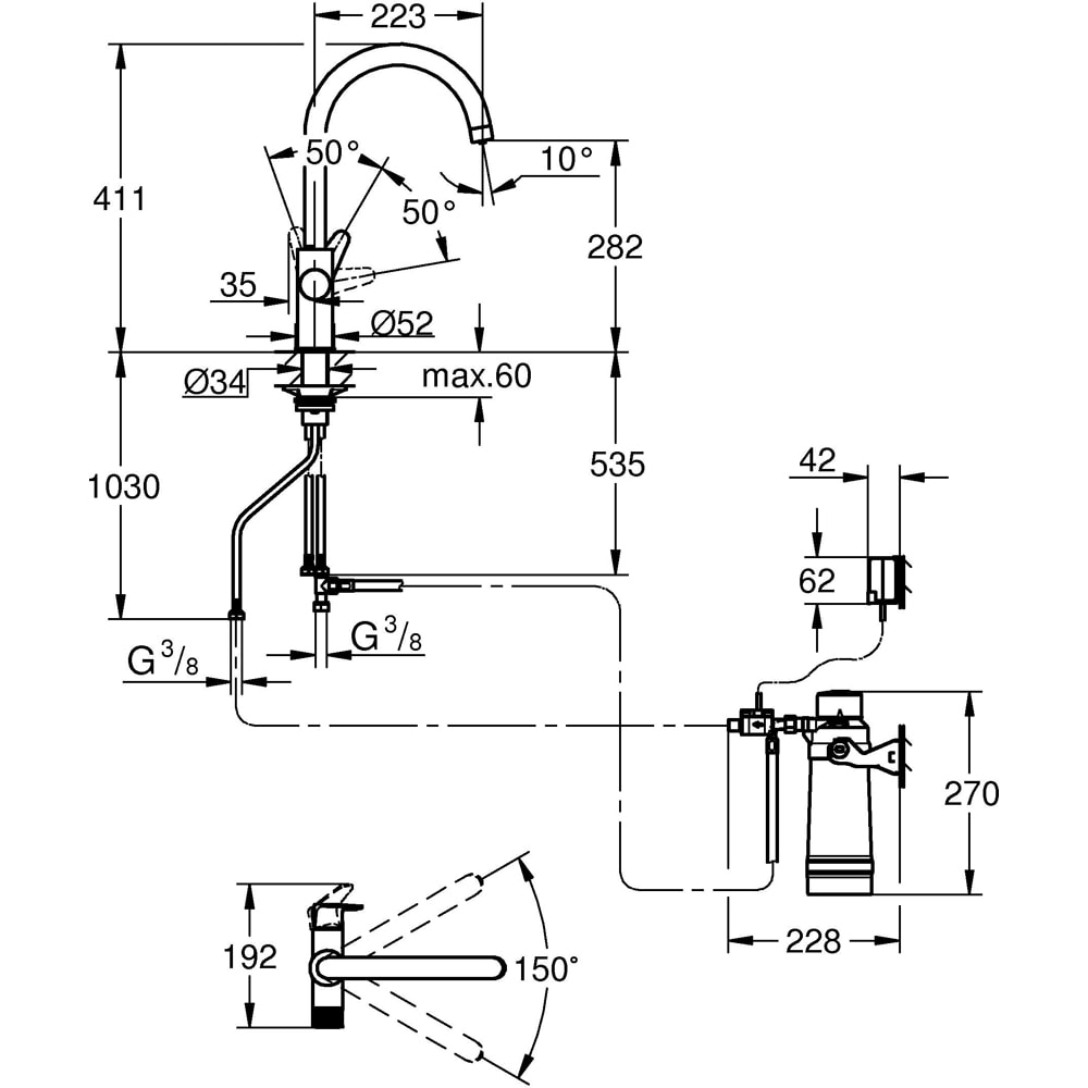 Baterie bucatarie GROHE Bau Blue Pure 30555000, alama sanitara, crom