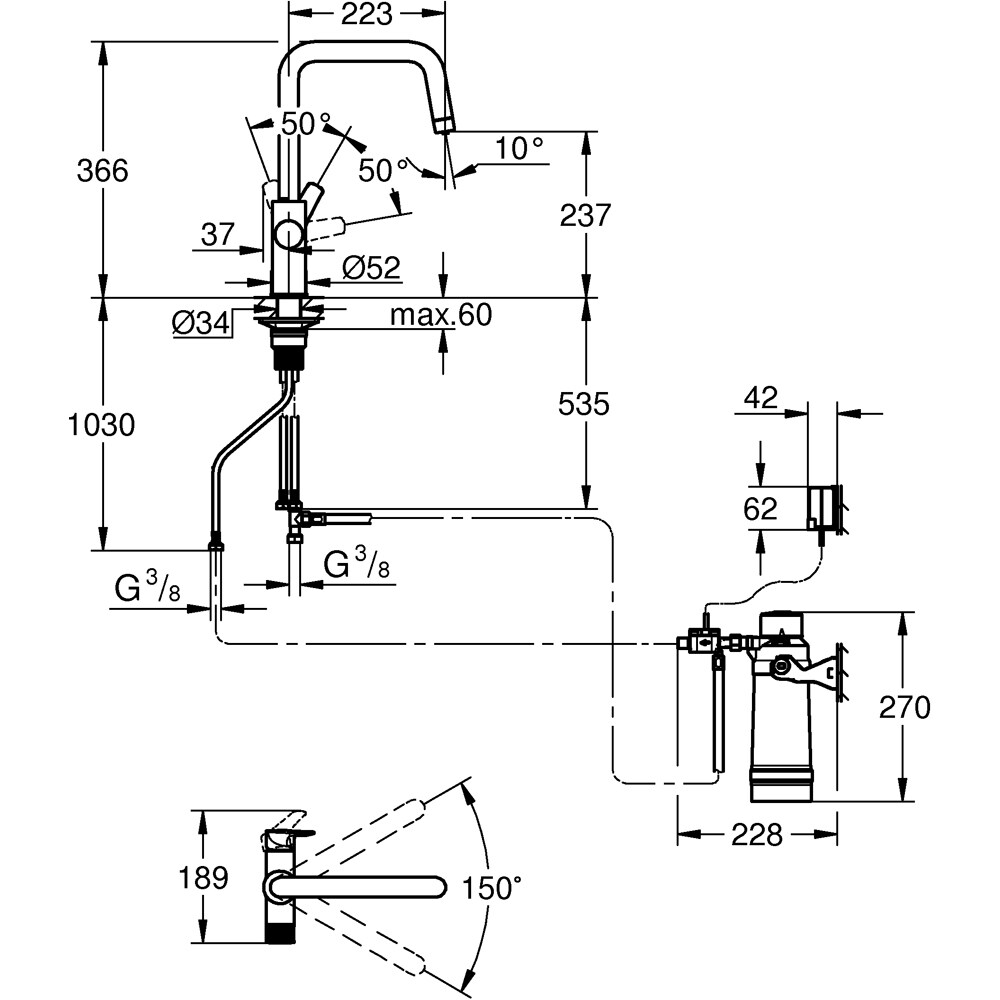 Baterie bucatarie GROHE Blue Pure Start 30594000, alama sanitara, crom