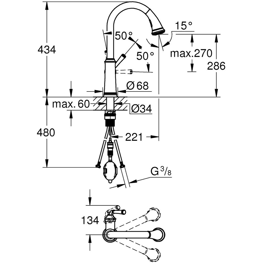 Baterie bucatarie GROHE Gloucester 30422000, tip C, alama, argintiu