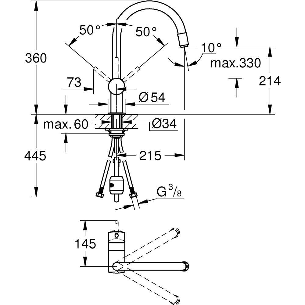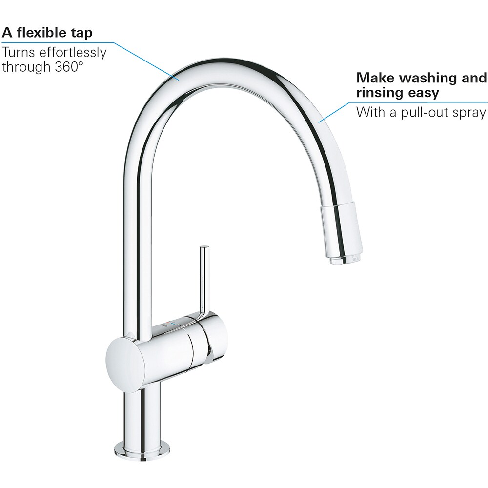 Baterie bucatarie GROHE Minta 32918000, dus extractibil, alama, crom