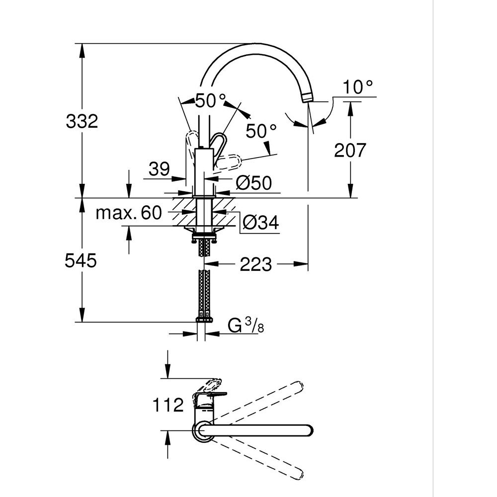 Baterie bucatarie GROHE Start Flow 31555001, alama, crom