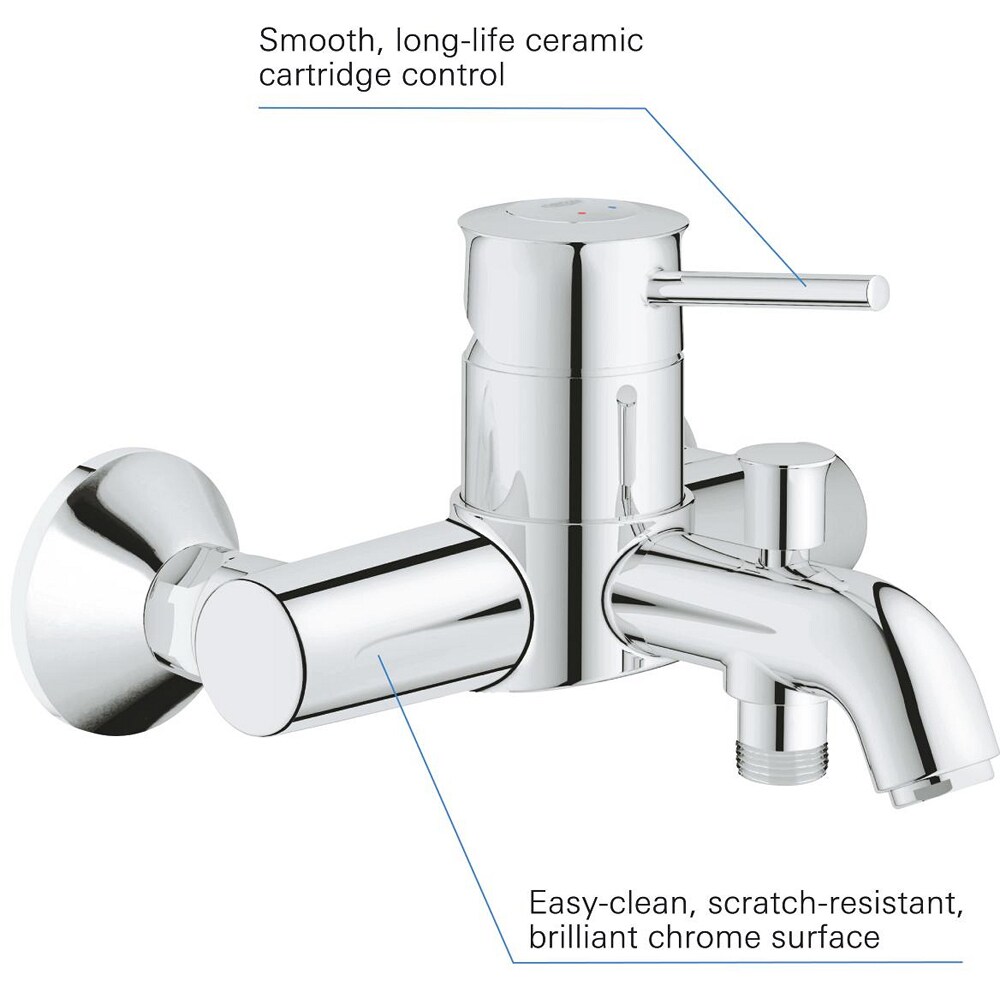 Baterie cada-dus GROHE BauClassic 32865000, aparenta, alama, crom