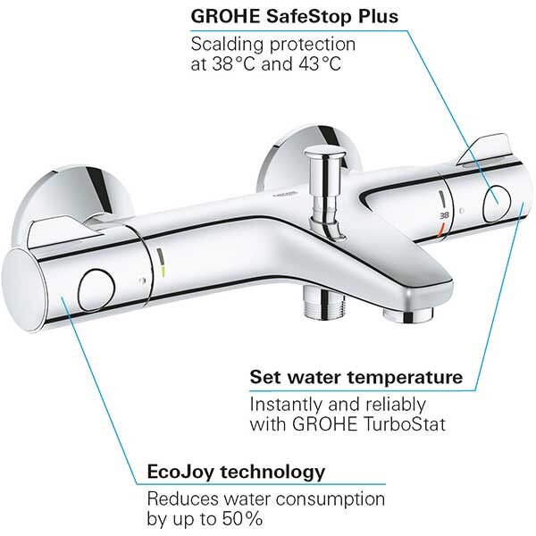Baterie cada-dus GROHE Grohtherm 800 34567000, termostat, metal, crom