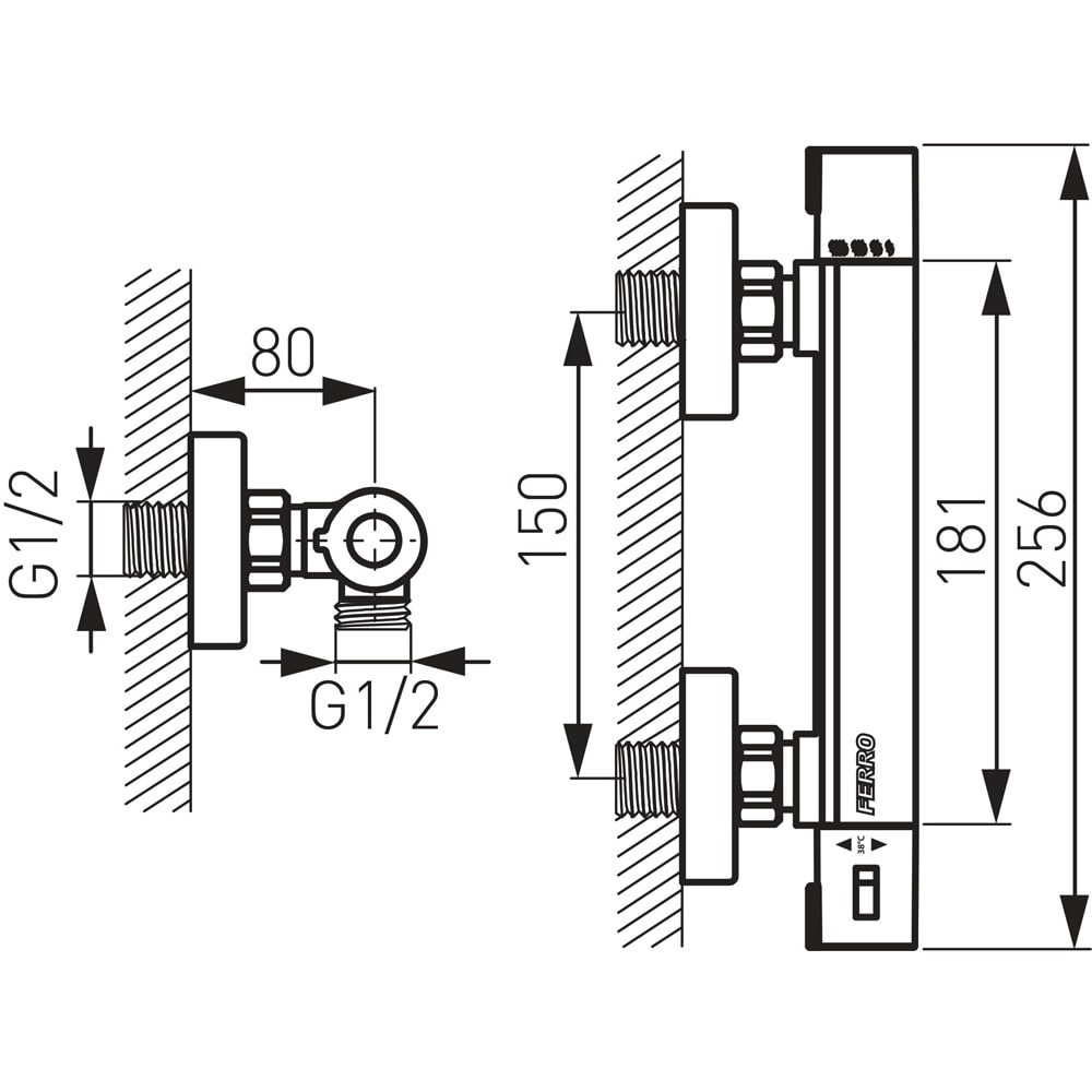 Baterie dus FERRO Trinity TRM7, termostat, alama sanitara, argintiu