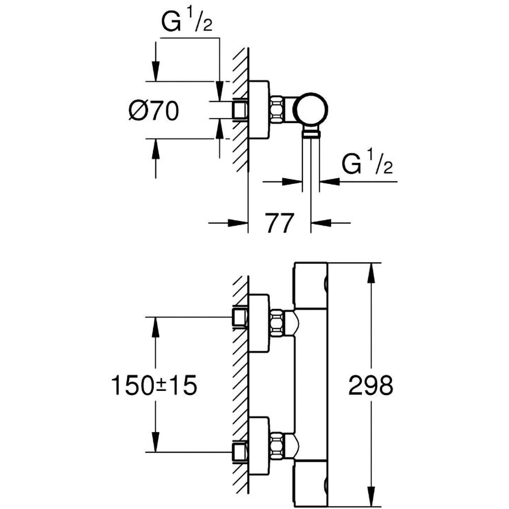 Baterie dus GROHE Grohtherm 1000 Cosmo 34065GN2, alama, auriu