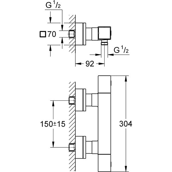 Baterie dus GROHE Grohtherm Cube 34488000, termostat, metal, argintiu