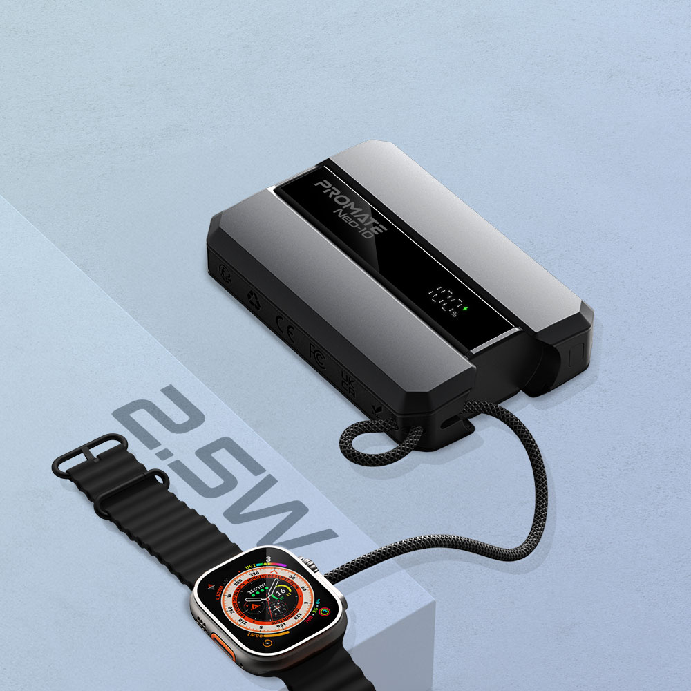 Baterie externa PROMATE Neo-10, 10000mAh, Incarcare Apple Watch 2.5W, 1x USB-C Power Delivery (PD) 30W, gri