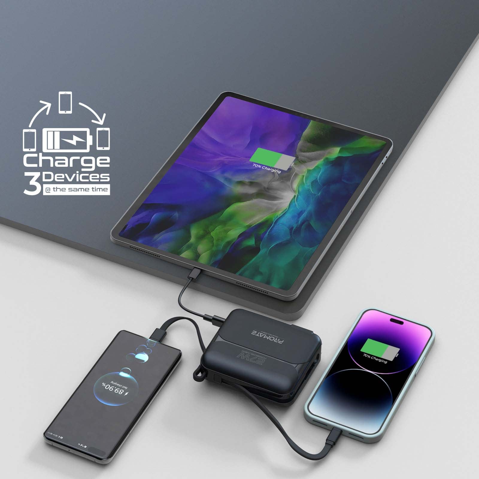Baterie externa PROMATE PowerPack-20Pro, 20000mAh, 2x USB-C, 1x Lightning, negru