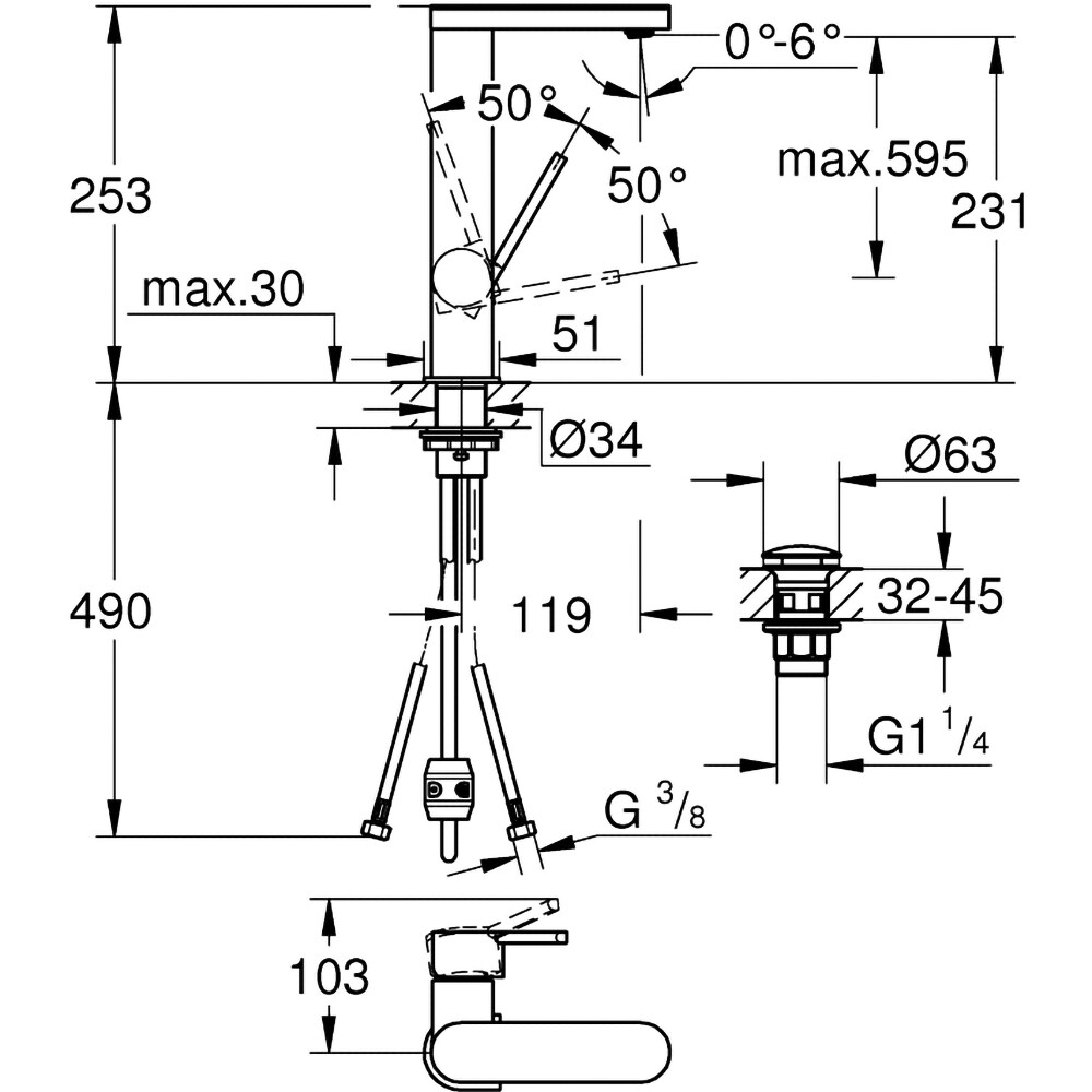 Baterie lavoar GROHE Plus 23844003, marimea L, alama, argintiu