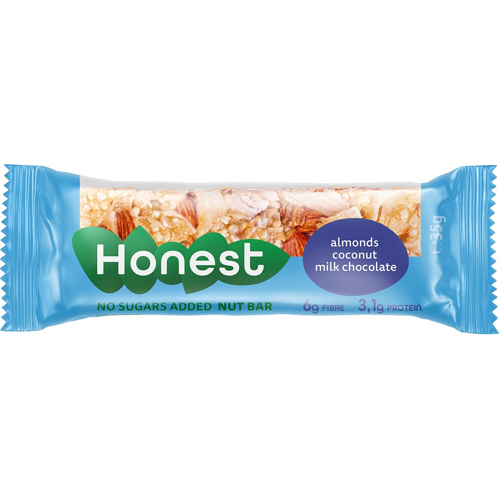 Baton cu migdale, cocos si ciocolata Honest, 16 buc x 35g, SLY NUTRITIA