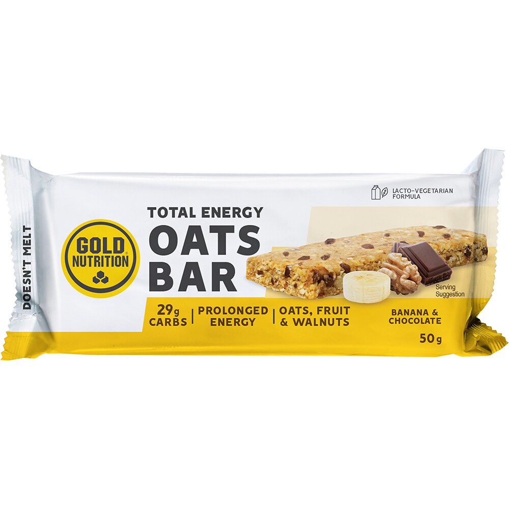Baton energizant din ovaz Total Energy, banane si ciocolata, 59 g x 15 buc, GOLDNUTRITION