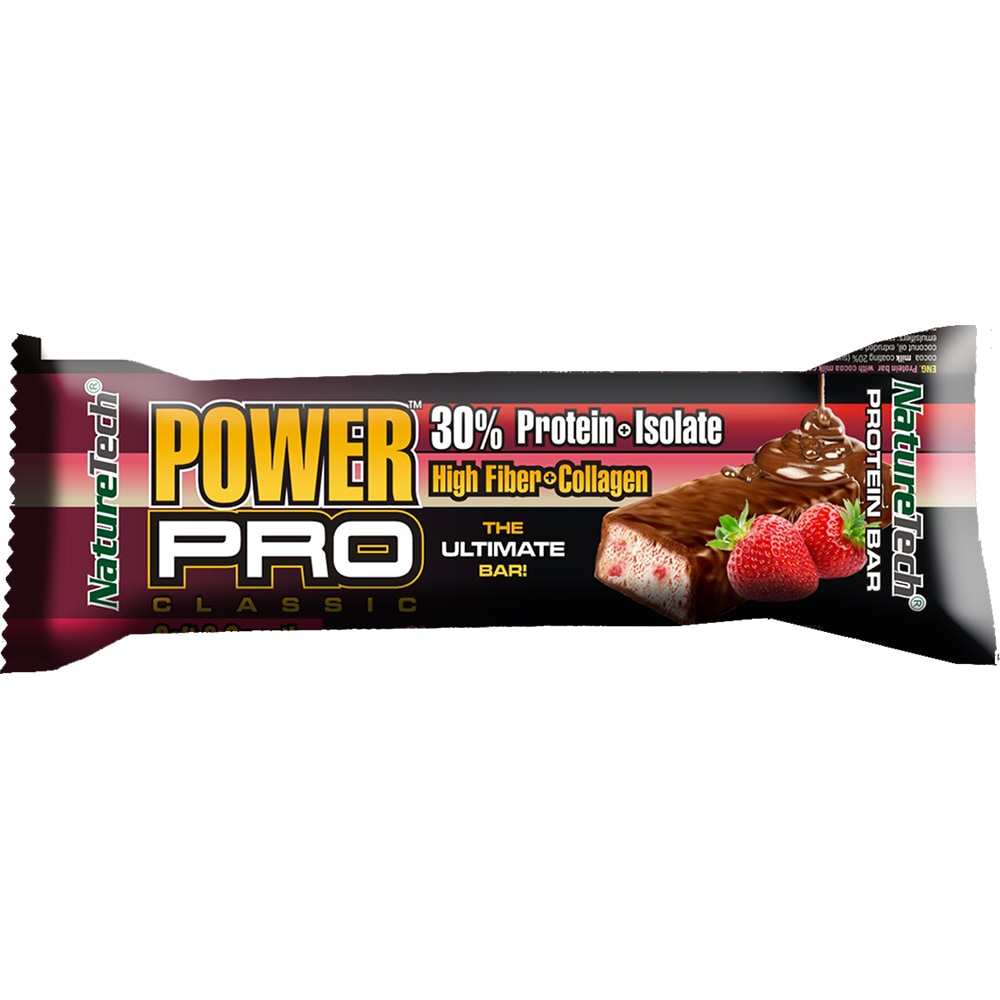 Baton energizant Power Pro cu capsuni si ciocolata, 30% proteina, 12 buc x 80 g, NATURE TECH