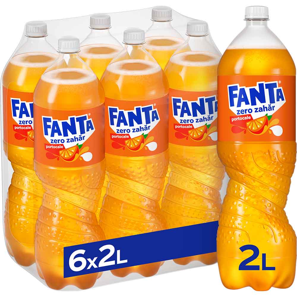 Bautura racoritoare carbogazoasa FANTA Portocale Zero Zahar bax 2L x 6 sticle