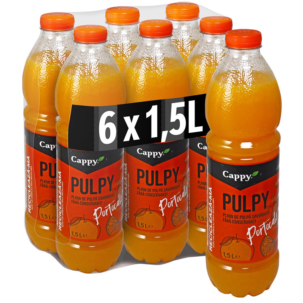 Bautura racoritoare necarbogazoasa CAPPY Pulpy Orange bax 1.5L x 6 sticle