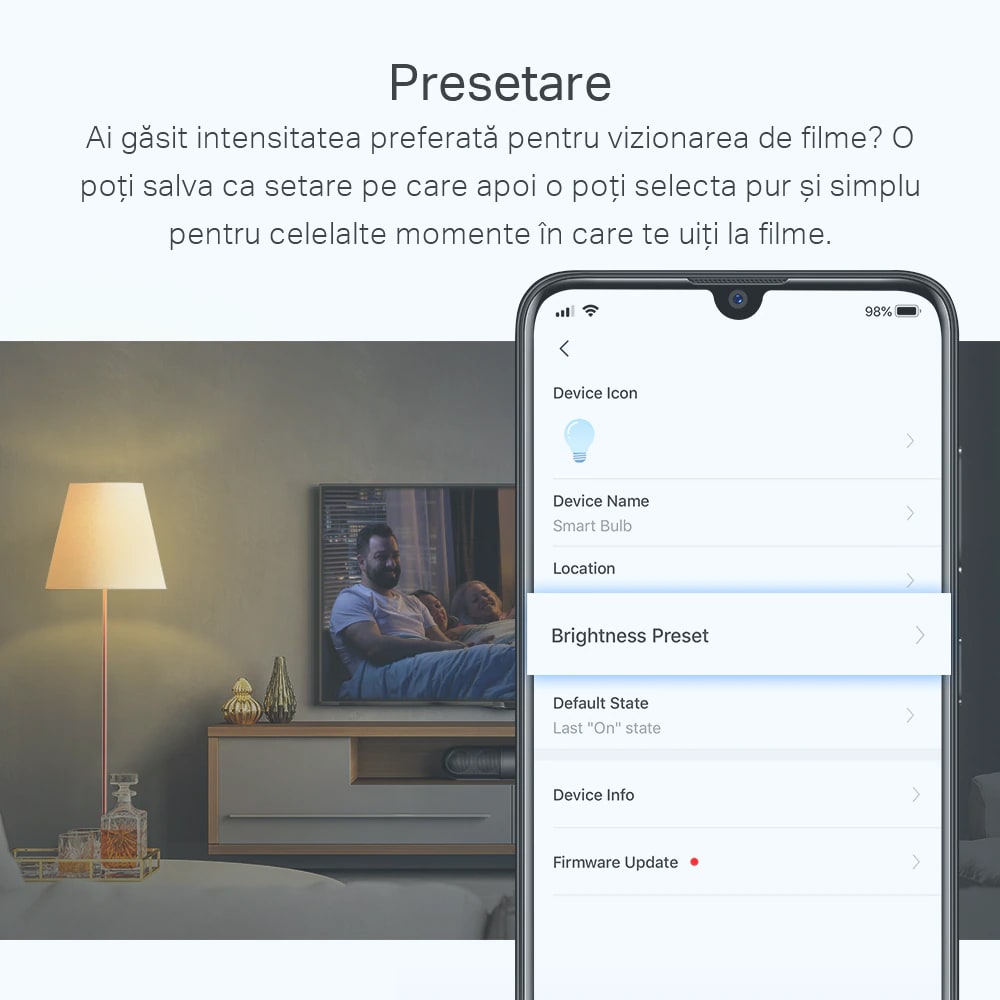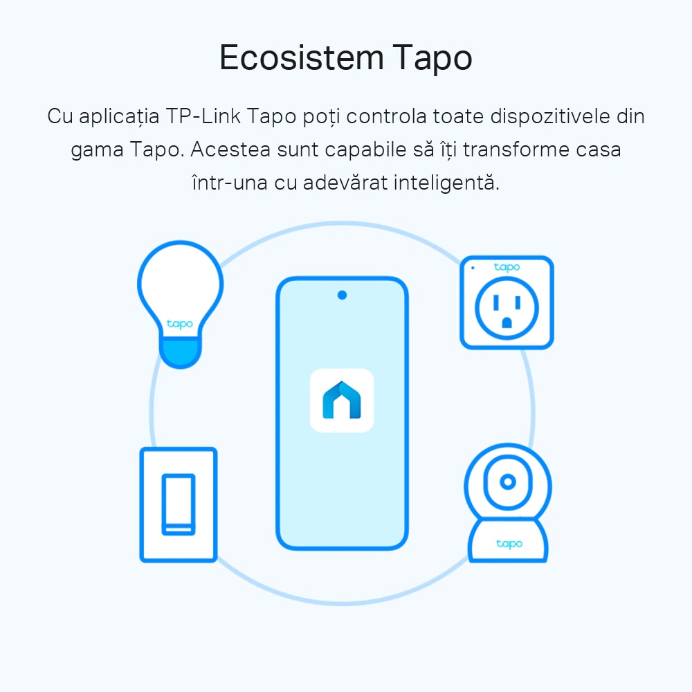 Bec LED Smart TP-LINK Tapo L510E, E27, 8.7W, 806lm, Wi-Fi, Dimabil, lumina calda, compatibil Alexa, Google Assistant