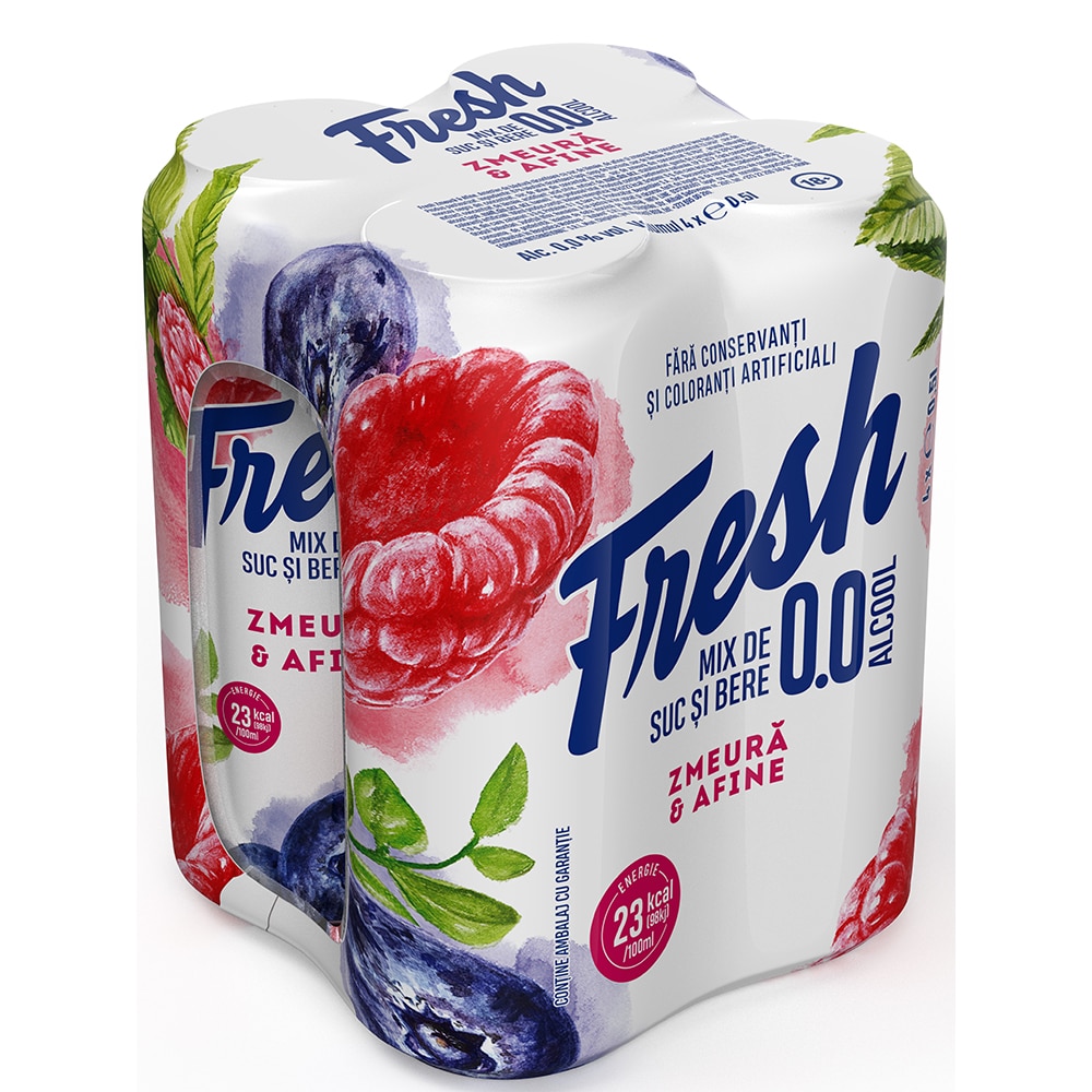 Bere blonda fara alcool Fresh 0 Zmeura & Afine bax 0.5L x 4 doze
