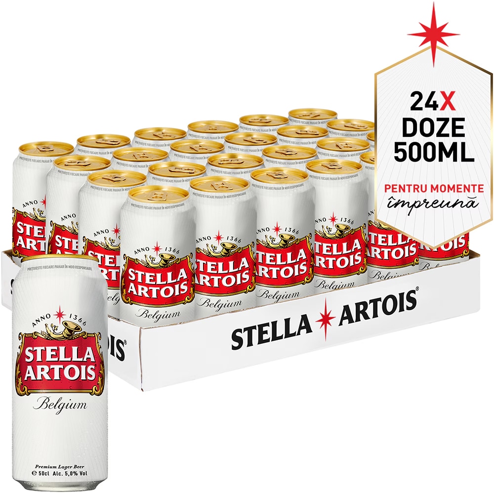 Bere blonda Stella Artois bax 0.5L x 24 doze