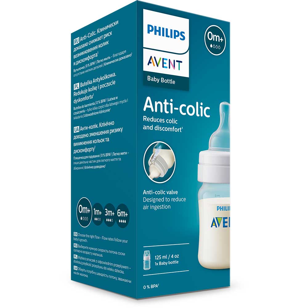 Biberon anticolici PHILIPS AVENT SCY100/01, flux nou-nascut, 0 luni+, 125ml, alb-transparent