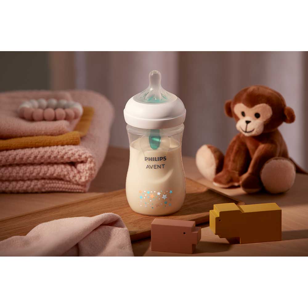 Biberon cu dispozitiv anticolici PHILIPS AVENT Natural Response AirFree SCY673/82, flux mediu, 1 luna+, 260ml, alb-verde