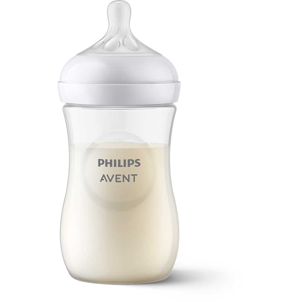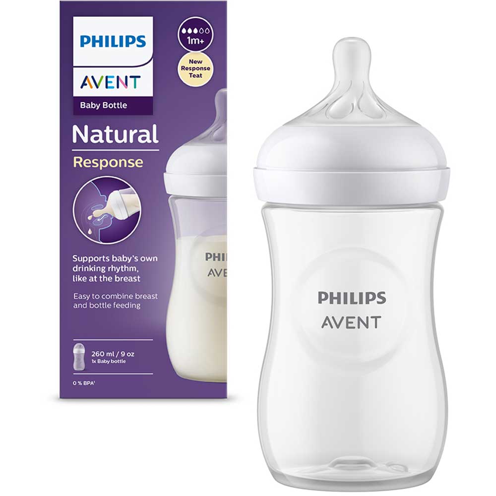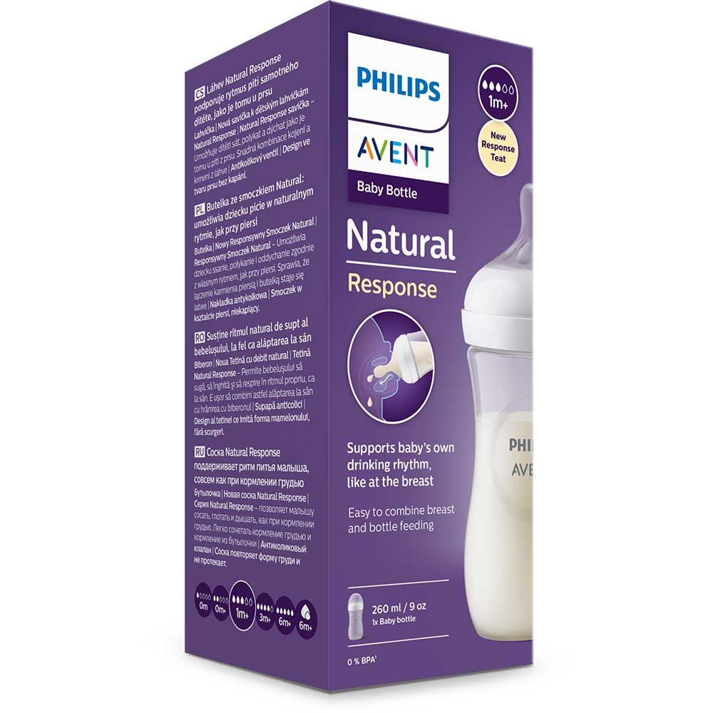 Biberon PHILIPS AVENT Natural Response SCY903/01, flux mediu, 1 luna+, 260ml, alb-transparent