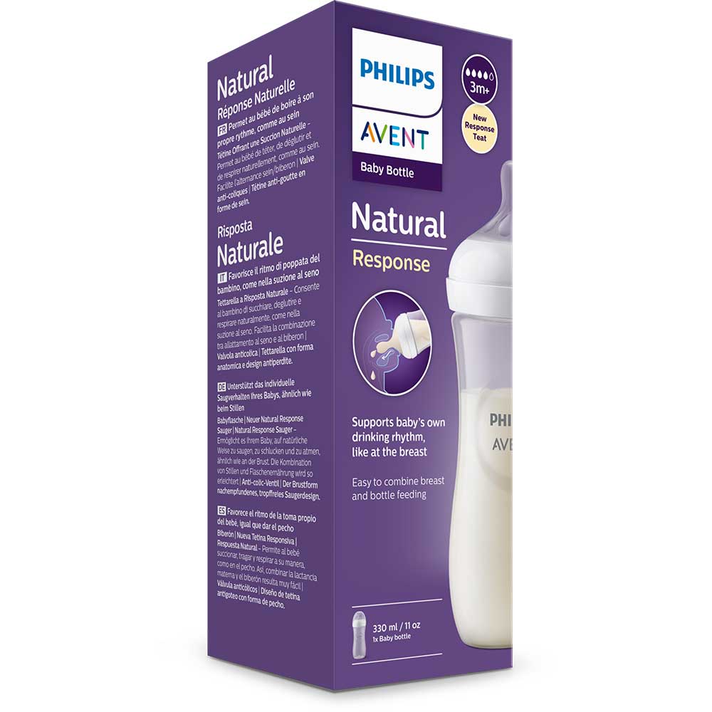 Biberon PHILIPS AVENT Natural Response SCY906/01, flux mediu, 3 luni+, 330ml, alb-transparent