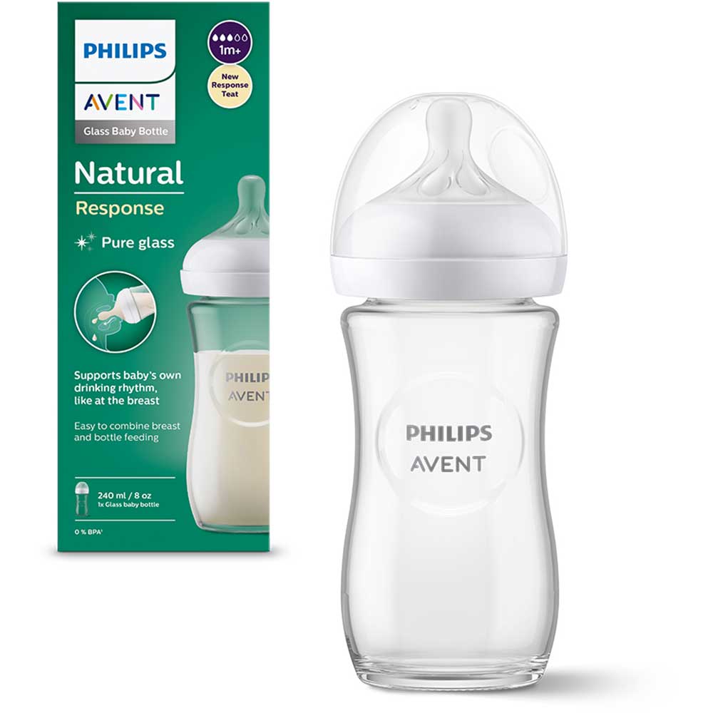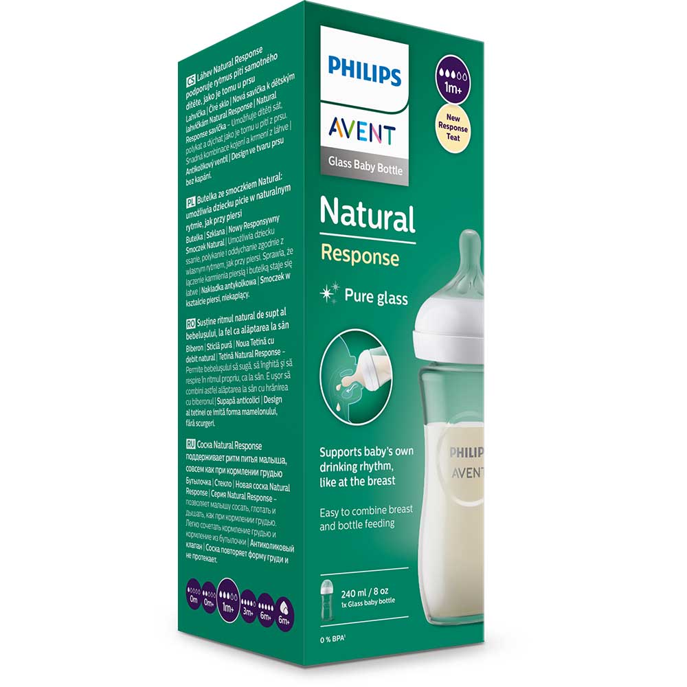 Biberon PHILIPS AVENT Natural Response SCY933/01, flux lent, 1 luna+, 240ml, alb-transparent