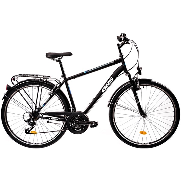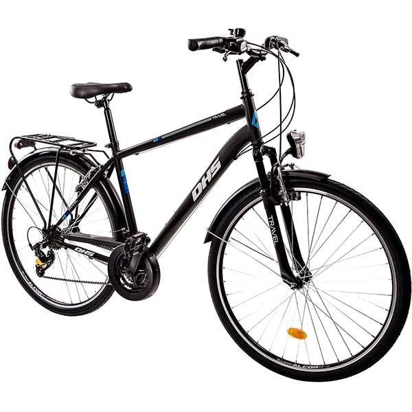 Bicicleta MTB DHS Travel 2855, roata 28", 21 viteze, schimbator Shimano, frana V-brake, negru