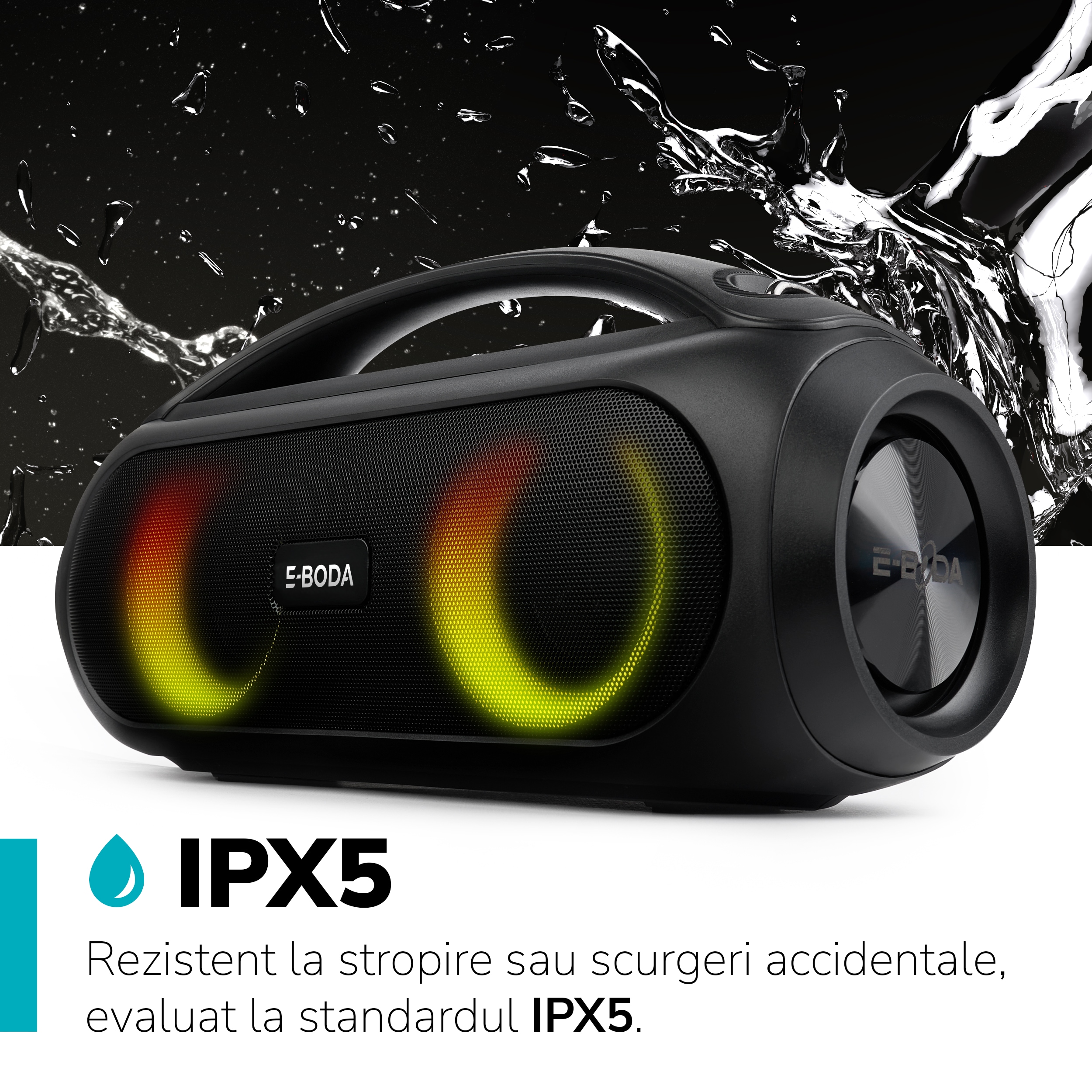 Boxa portabila E-BODA The Vibe 410, Bluetooth, USB, Radio FM, IPX5, negru